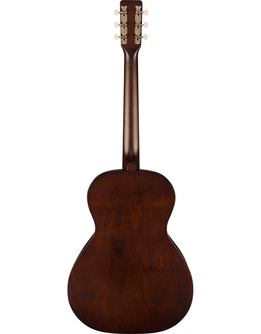 The X-braced body is crafted with select lightweight laminate tonewoods for an optimal balance of woody vintage tone and reliable durability, while the “C”-shape neck presents an inviting feel for hours of old-timey inspiration. Period-correct details such as a vintage-style pinned bridge, “G”-graphic pickguard, painted pinstripe purfling, 3-on-a-plate open-gear tuning machines and oversized dot fingerboard inlays combine for a nostalgic personality destined for any barnburner or jamboree.