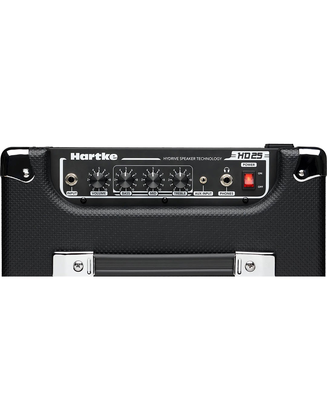 Top-mounted amplifier with Volume, Bass, Mid and Treble controls