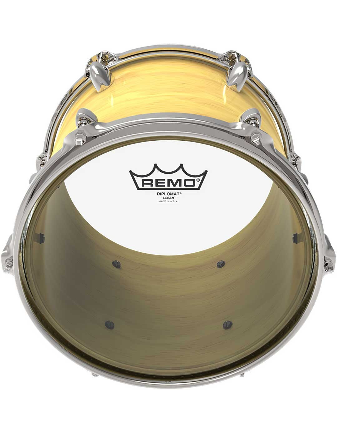 The Clear Diplomat® is Remo’s brightest, most open sounding head due to its single layer of 7.5-mil Mylar® film. They’re known for their bright tones, resonance, and sustain and as resonant (bottom) heads opening up