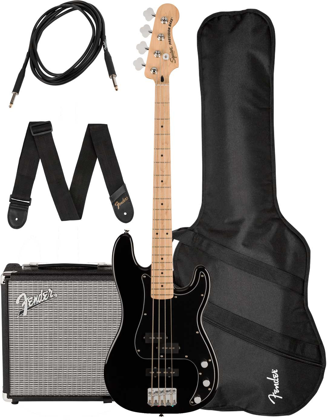 Squier Affinity Series™ Precision Bass® PJ Pack, Rumble 15 AMP, Maple Fingerboard, Black